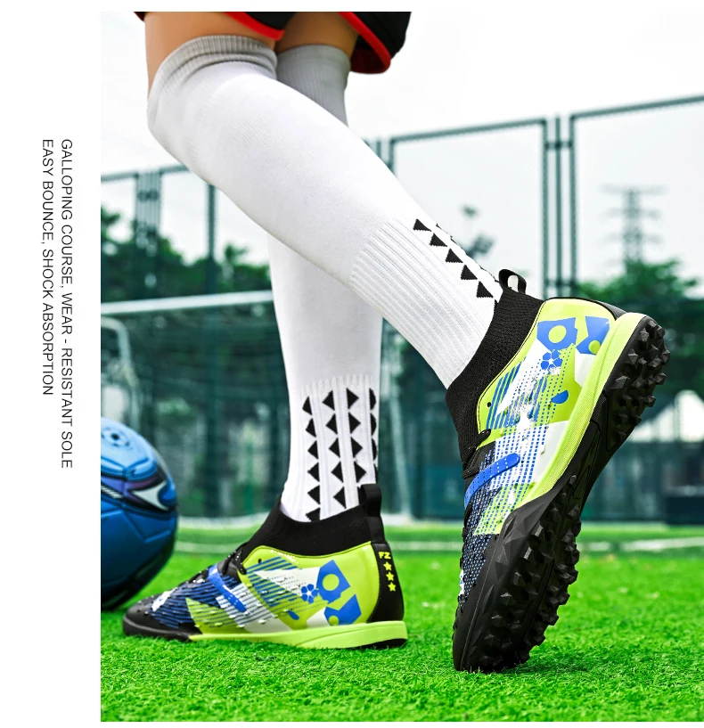 Chaussures de Football ultralégères à cheville haute pour hommes, bottes de Football d’intérieur antidérapantes, chaussures de Futsal pour Sports de plein air de haute qualité